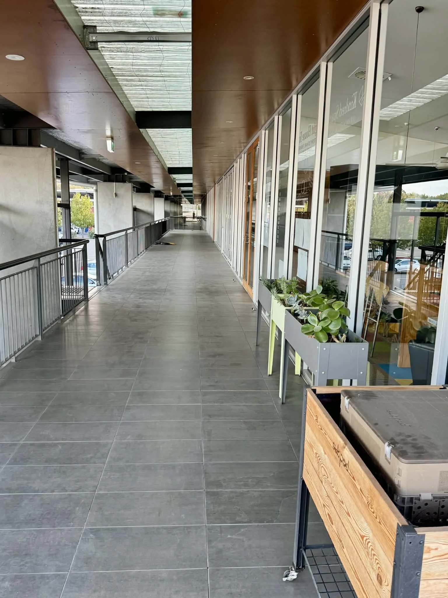 It has room for 18 individual work stations (we had 17 people working here 2023/24), two meeting spaces, loads of storage including a big library space and separate storage room, a full kitchen, a break out lunch/chill corner, space for bikes, a kids corner, lift access, ceiling fans, reverse cycle air conditioning that keeps it super comfy in the heights of summer and depths of winter, EV charging, lovely easterly orientation and a balcony wrapping around two sides (SE to the markets and NE to Majura St and the hills beyond). It even has views to Black Mountain and Mt Ainslie, not to mention the incredible selection of food downstairs every Thursday and Friday!