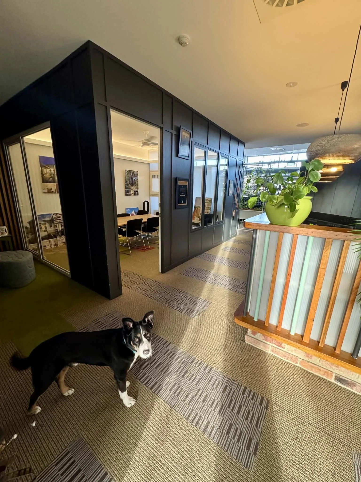 PS we even have a beautiful modular mural design — Forest Light — by the hugely talented Sonia van de Haar of Lymesmith that we were going to implement gradually (1200 x 2400 panel by panel) across the back white wall of the office. I will happily help with the painting if someone takes this on — I was soooo looking forward to it!