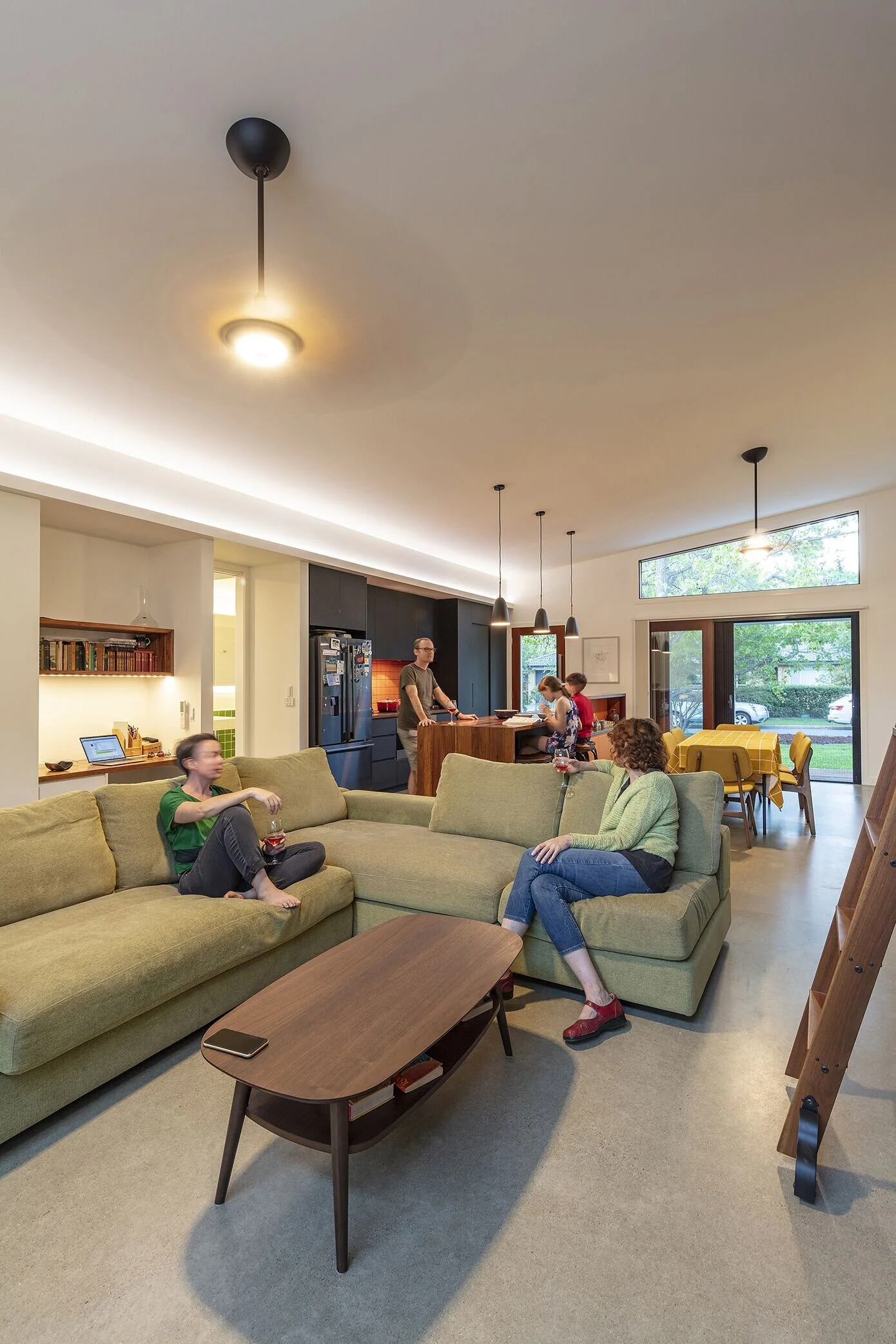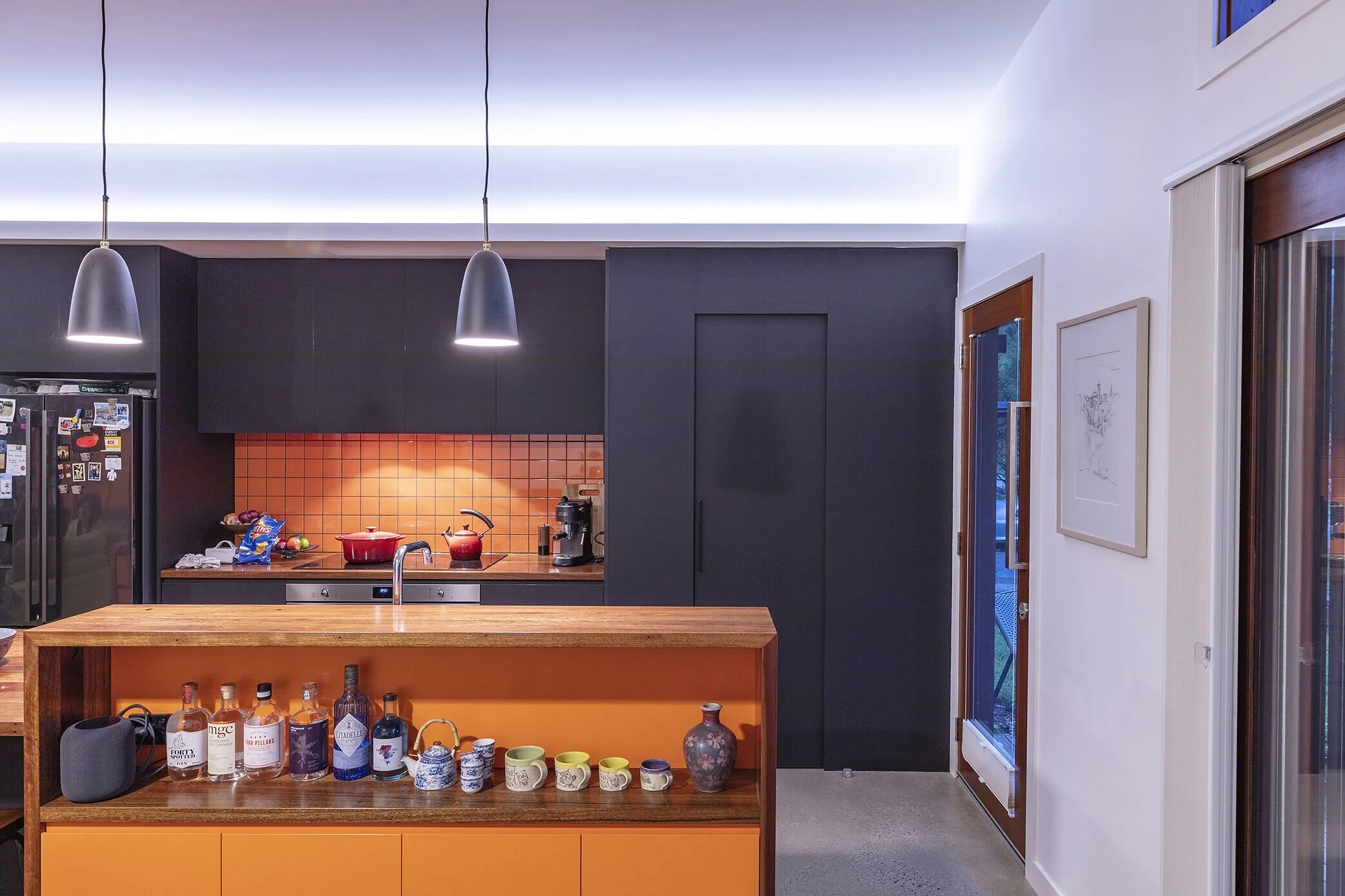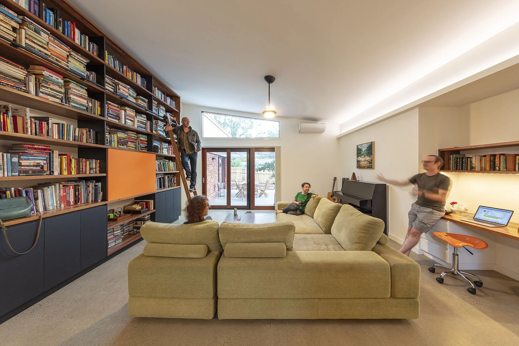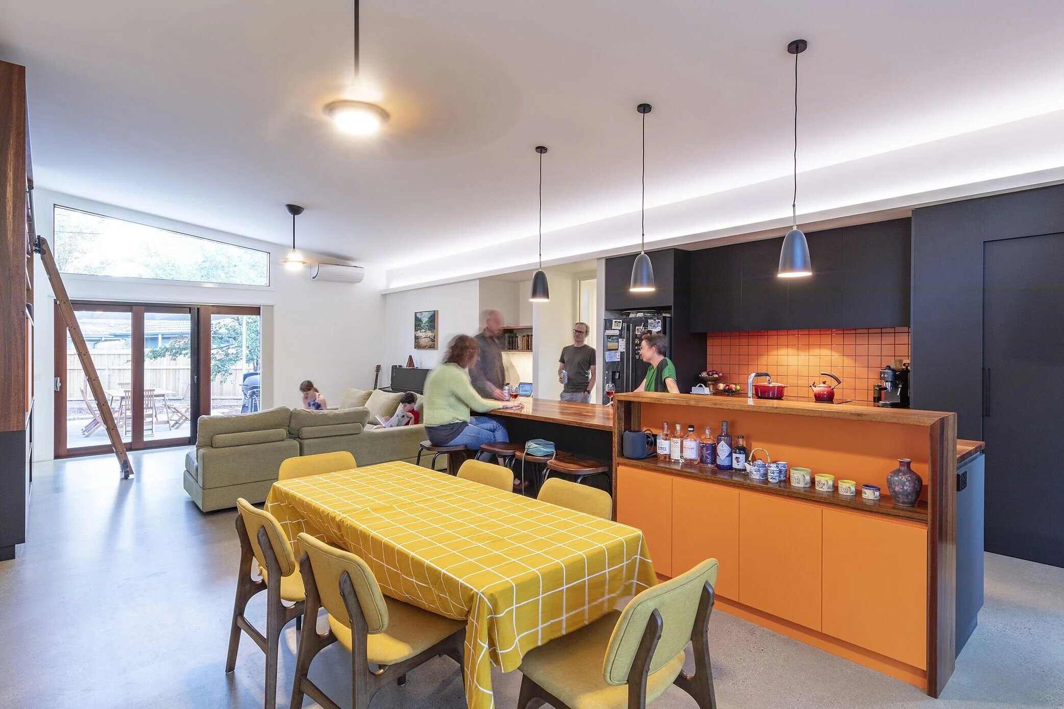 “Every day we are appreciating all the thought that went into the design of this house. I remember a conversation early in the piece where you talked me out of having the multi room right off the lounge room, and you were absolutely right - the living space in the centre of the house is so beautiful that we are almost always together in it. It really does work to help us hang out together as a family, except when we need our own space, when there is ample room for that. M’s office, on the other hand, is just as separate as it needs to be, and is working really well.”